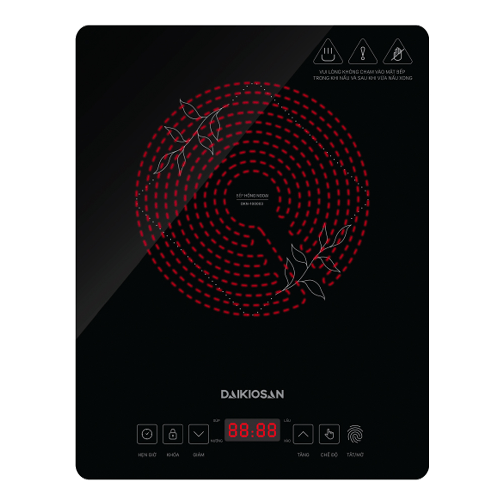 Bếp hồng ngoại đơn Daikiosan DKN-100003 có thiết kế nhỏ gọn cùng màu đen sang trọng kết hợp với các họa tiết màu đỏ giúp sản phẩm trở nên bắt mắt, phong cách, góp phần làm tăng nét trẻ trung cho không gian bếp của bạn.