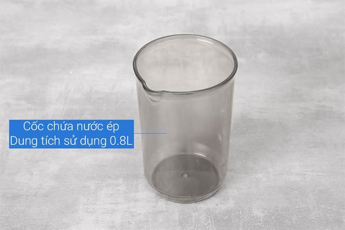 - Trang bị cốc đựng nước ép 0.8 lít và cốc đựng bã đi kèm bằng nhựa.
