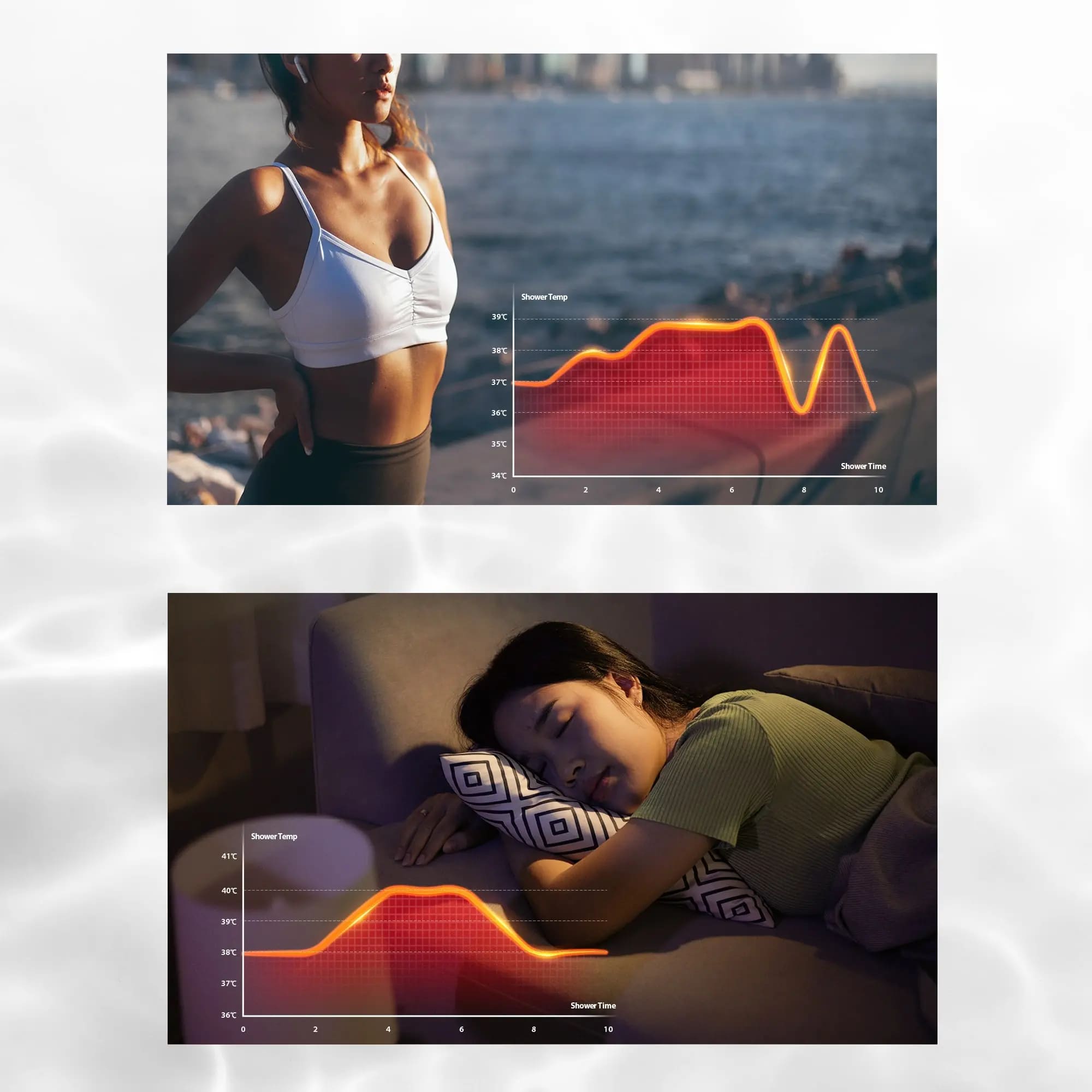 - Chế độ Thư giãn: Tăng dần nhiệt độ lên 40°C, giữ trong 2 phút rồi giảm về 38°C giúp thư giãn sâu, chuẩn bị cho một giấc ngủ ngon.