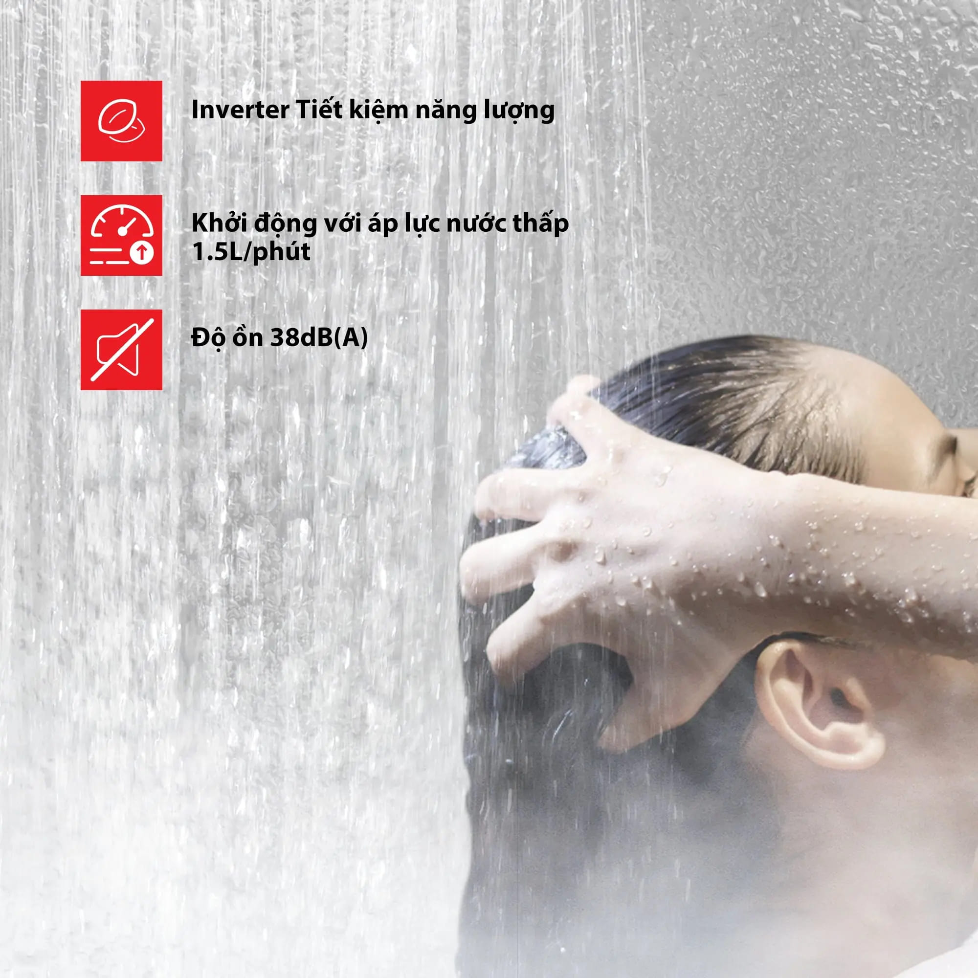 Với độ ồn chỉ 38dB(A), máy nước nóng hoạt động cực kỳ êm ái, tạo không gian yên tĩnh thư giãn, không làm ảnh hưởng đến sinh hoạt của các thành viên trong nhà.